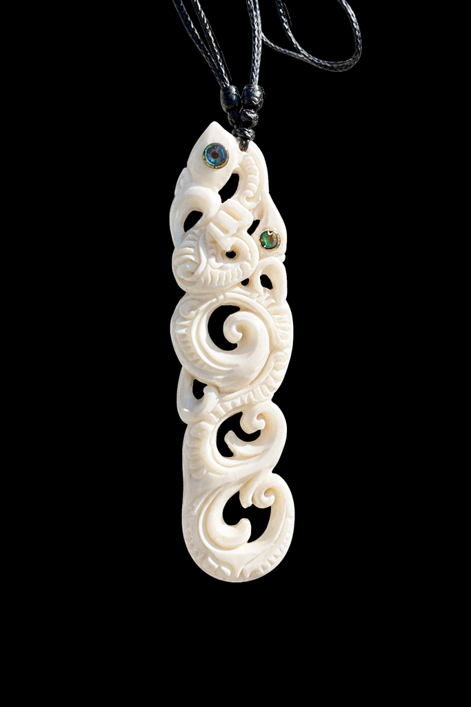 Beef bone etched manaia